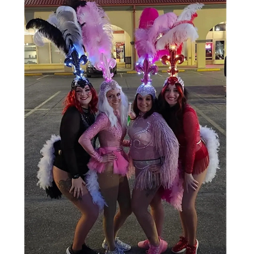 Promoting self-love and confidence is a powerful tool for empowering women. As mothers, sisters, wives and professionals, it's essential to unwind. What better way than by expressing a creative style and shaking tailfeathers with our sister showgirls. We are dedicated to supporting one another as well as helping others in our communities.